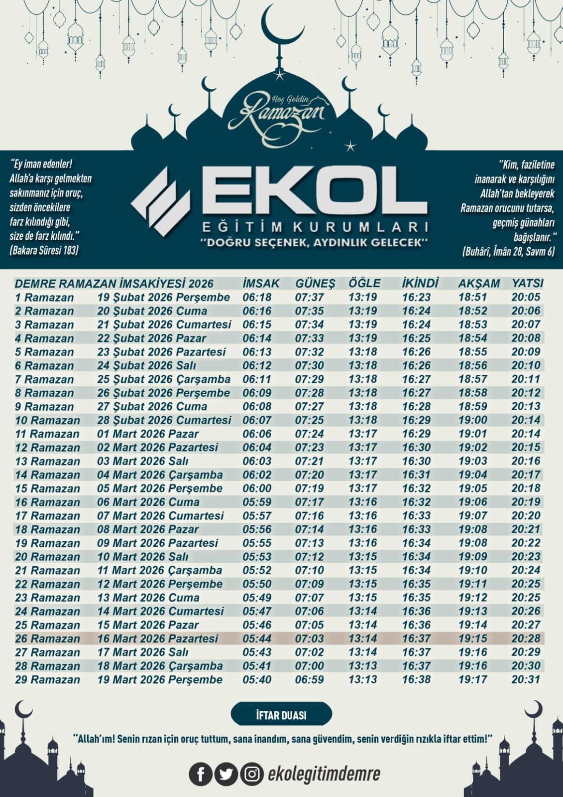 Demre Ramazan İmsakiyesi 2026Published by Demre Ekol on 20/02/202620/02/2026 Demre Ramazan İmsakiyesi 2026 Kategoriler: Duyuru 0 yorum Bir yanıt yazın Yanıtı iptal etE-posta adresiniz yayınlanmayacak. Gerekli alanlar * ile işaretlenmişlerdir İsim * E-posta * Web sitesi Aklınızdan ne geçiyor? Daha sonraki yorumlarımda kullanılması için adım, e-posta adresim ve site adresim bu tarayıcıya kaydedilsin.